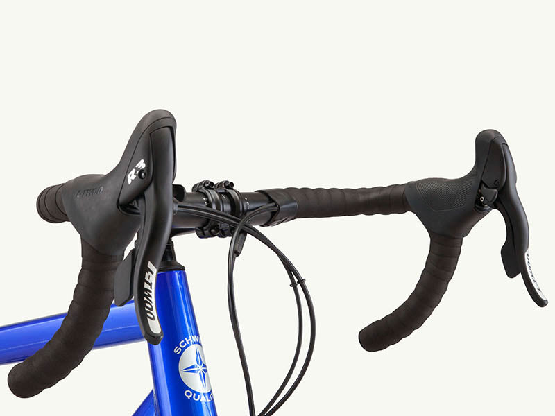 Ergonomic aluminum handlebar and stem offer the perfect aerodynamic riding position for distance and speed on pavement.