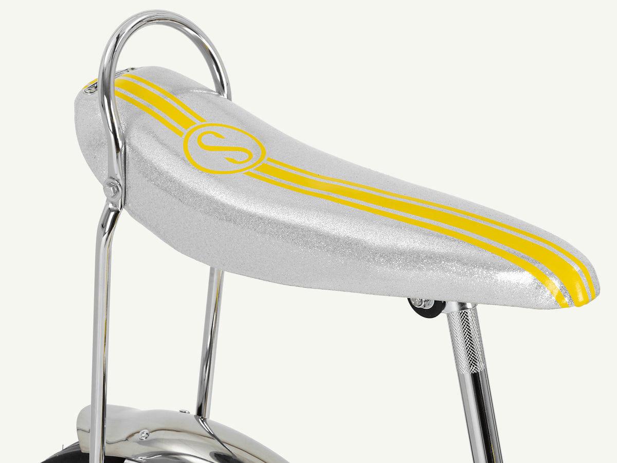 16” front wheel. 20” rear wheel features real Sting-Ray Slick tire. Lightweight aluminum rims. Fenders look great and help protect you from splashes.