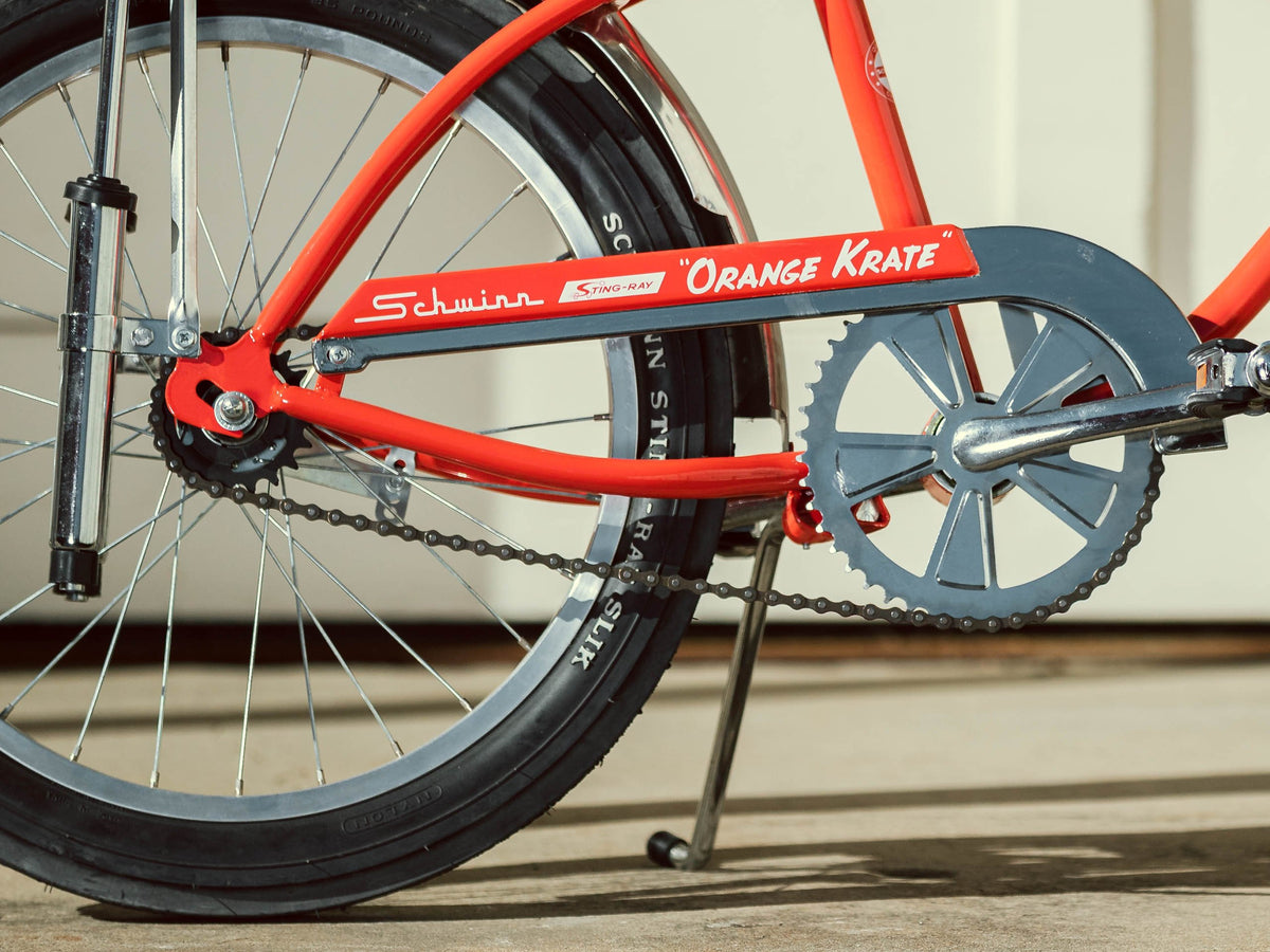 Blast off with a classic Schwinn Krate, featuring the iconic Sting-Ray style frame and springer fork. It's the classic icon of childhood fun.