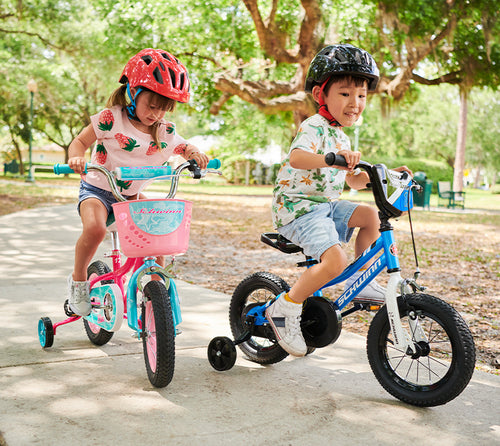Riding a bike is a blast! Designed specifically for kids, these bikes are perfect for learning and having fun. They include great features like training wheels, baskets or number plates, fun graphics, bold colors, and more.