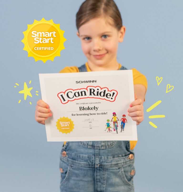 Learning to ride a bike is a huge milestone for a kid. Not only are they mastering important skills of physical coordination, but learning to ride opens a whole new world of fun and independence. You can celebrate your child's achievement with an official Schwinn SmartStart ‘I Can Ride’ Certificate!