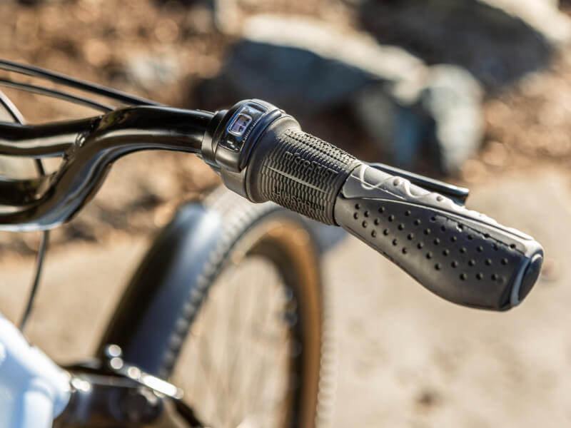 Don’t sweat the hills. An 8-speed drivetrain with a single twist shifter makes it easy to climb hills and keep up with your riding companions.